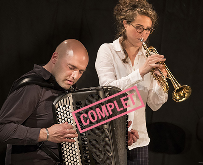 L’accordéoniste LIONEL SUAREZ que le regretté MARCEL AZZOLA considérait comme son petit frère, dont la liste des collaborations se décline à l’infini, impose sa délicatesse et sa créativité dans les mondes composites qu’il traverse, album, musiques de film, théâtre, direction artistique de festival. La trompettiste AIRELLE BESSON remarquable par son jeu clair au service de la musicalité, est aussi bien une sidewoman demandée qu’une leader et compositrice affirmée avec à son actif de multiples récompenses. L’alliage rare de la brillance de la trompette et du moelleux de l’accordéon se conjuguent dans une certaine vivacité menant au dialogue intime de ces deux personnalités avec une simplicité évidente et une infinie tendresse qui forcent l’admiration.